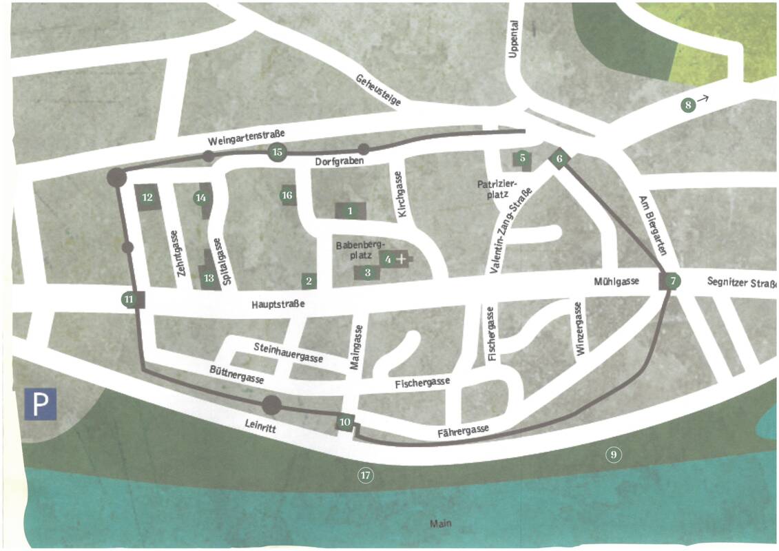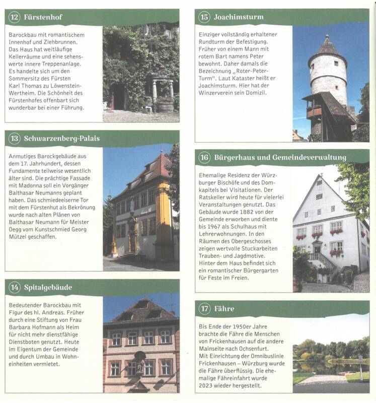Ortsplan von Frickenhausen am Main mit historischen Gebäuden